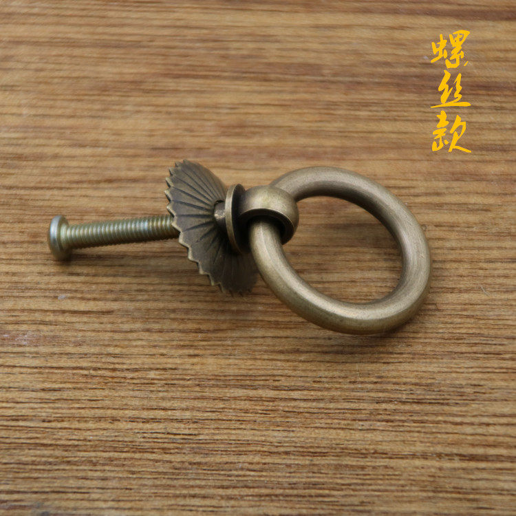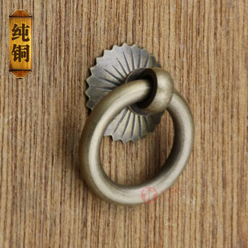 Antique Chinese copper handle pure copper drawer cabinet door handle flower-shaped ring pull ring handle hardware furniture copper accessories