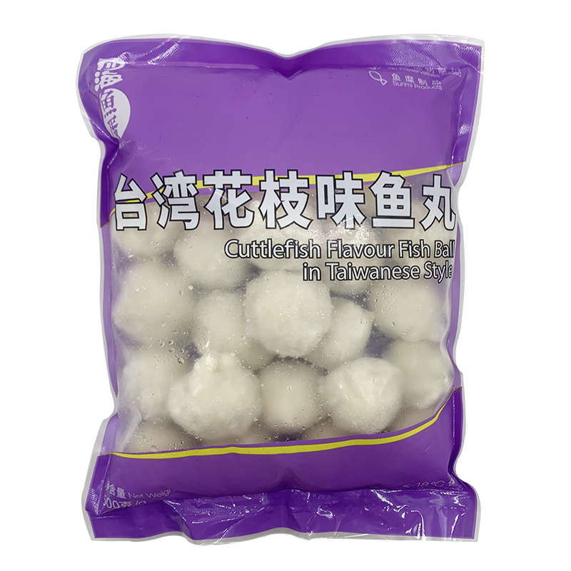 Four Seas Taiwan Flower Branches Taste Fish Balls Ink Fish Taste Fish Balls Large Grain Bullet Tooth Commercial 500g * 12 Hotpot Ingredients Distribution