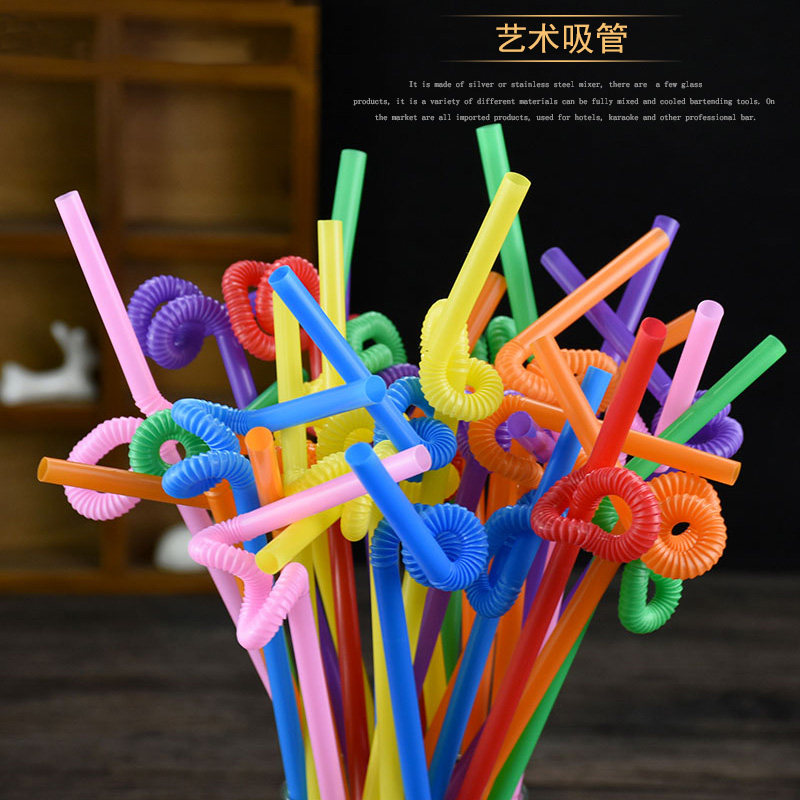 Disposable Plastic Art Color Transparent Straws Drink Straws Juice Straws 10 Packs