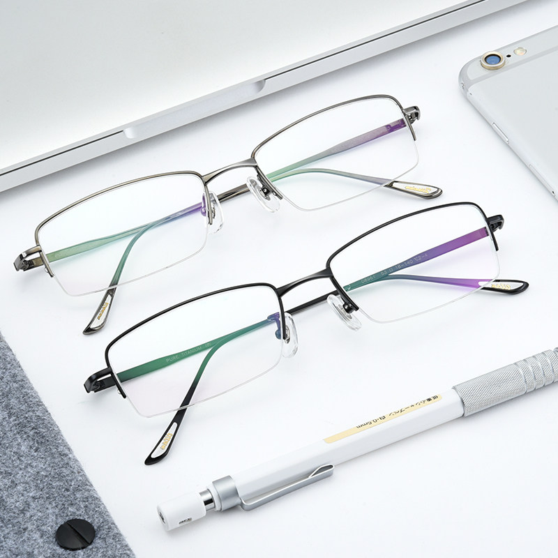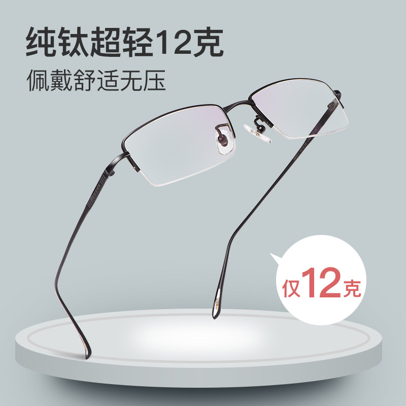 Temperament ultra light pure titanium semi-framed spectacle frame men can be matched with myopia astigmatism finished product with degree discoloration eye frames