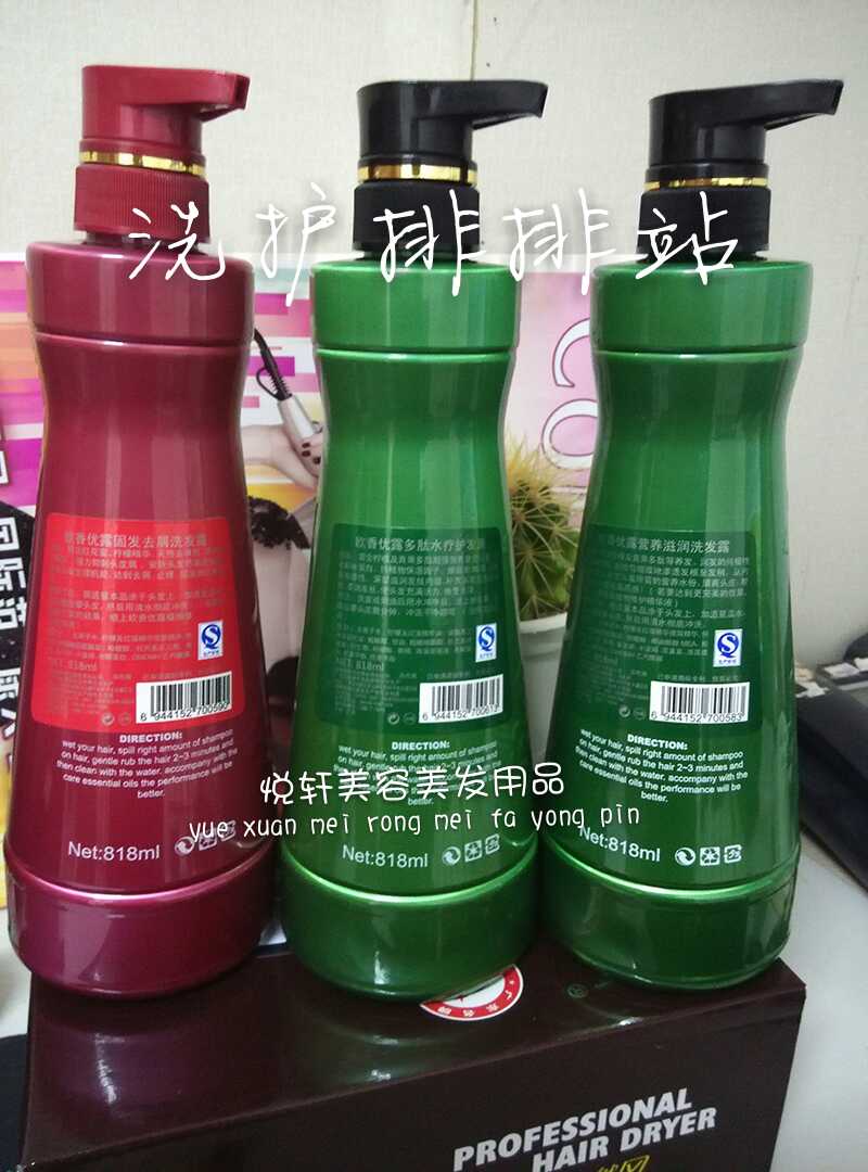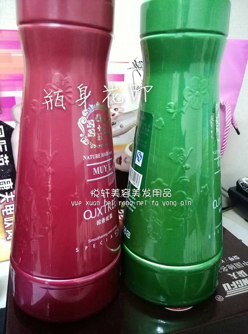Solid hair desquamation (red bottle) nourishing and moisturizing (green bottle)