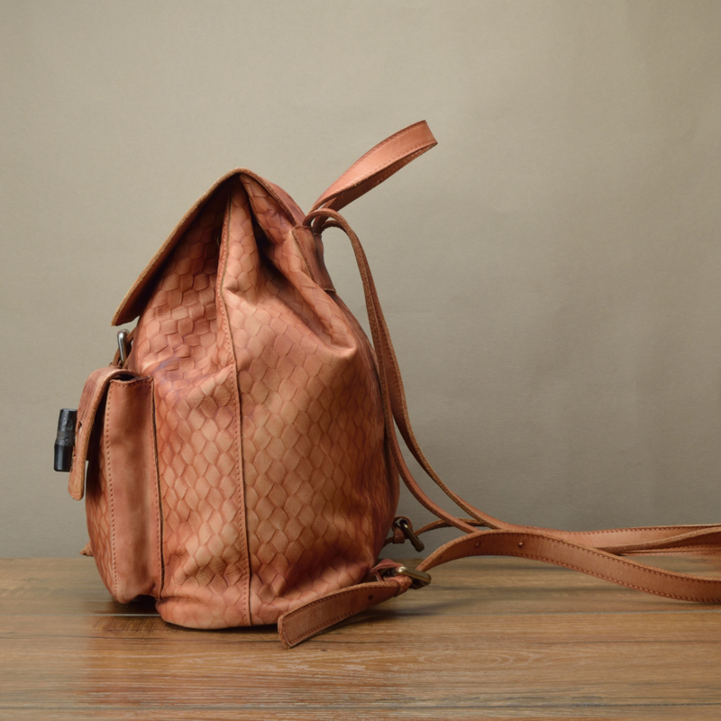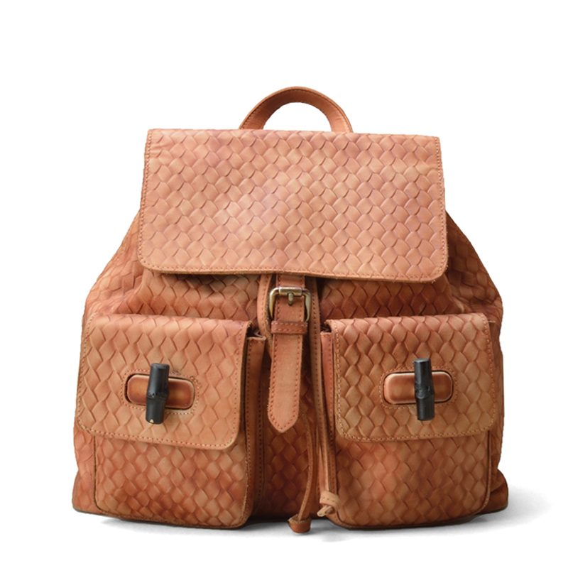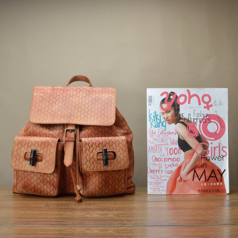 FMMIX Nordic new imported full genuine leather double shoulder backpack Women's Tidal Bamboo Festival Bag Travel Bag Bull Leather Bag-Taobao