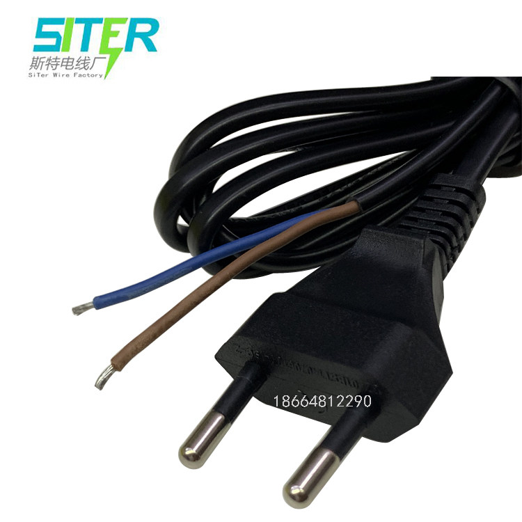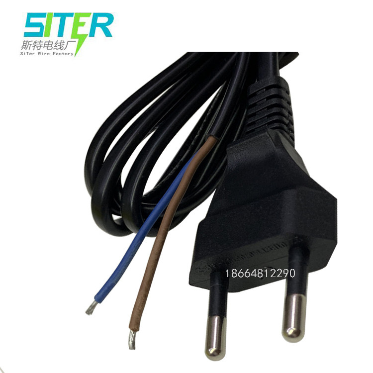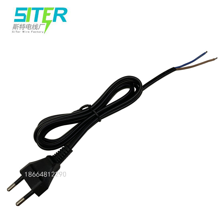 Small European standard Russian two-core single head 2*0 75 square two round feet European plug wire stripped tail tin power cord