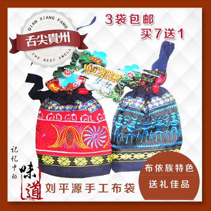 Full 7 delivery 1 Guizhou special production town Ningbo sugar Liu Pingyuan cloth cloth bag 200g Miao cloth clothes customs embroidered cloth bag sugar