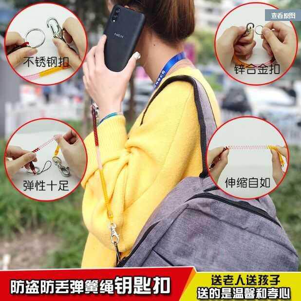 Japan-US stainless steel key buckle spring stretch anti-loss key chain elderly waist hanging buckle creative gift