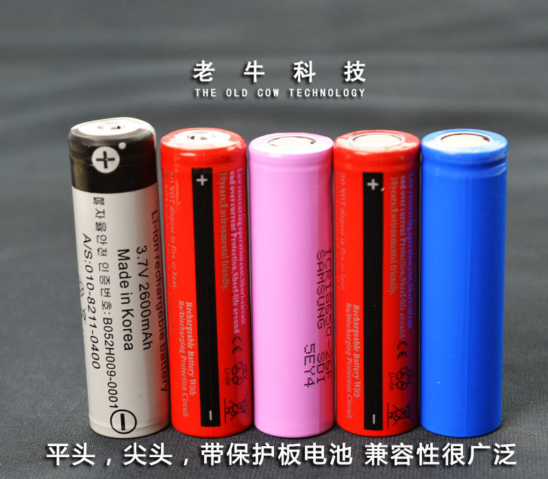 Intense light flashlight special 18650 Lithium battery can be added with protective plate rechargeable 3 7V flat head