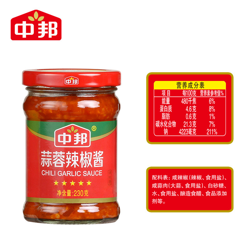 Zhongbang garlic chili sauce 230g*8 bottles mixed noodles bibimbap sauce Rice sauce for hot pot dipping seasoning appetizer sauce