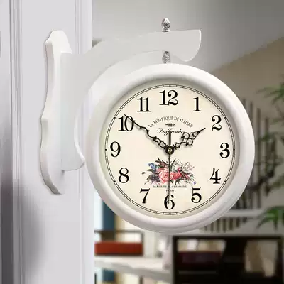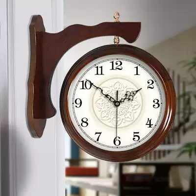 Simple Chinese double-sided wall clock living room large two-sided creative clock mute European pastoral American quartz clock