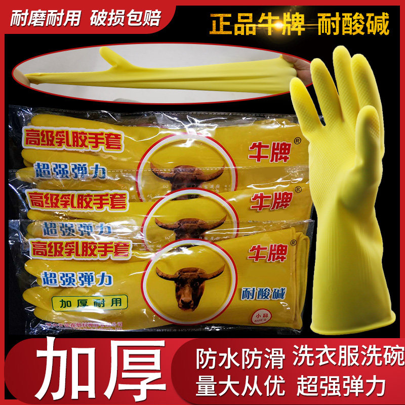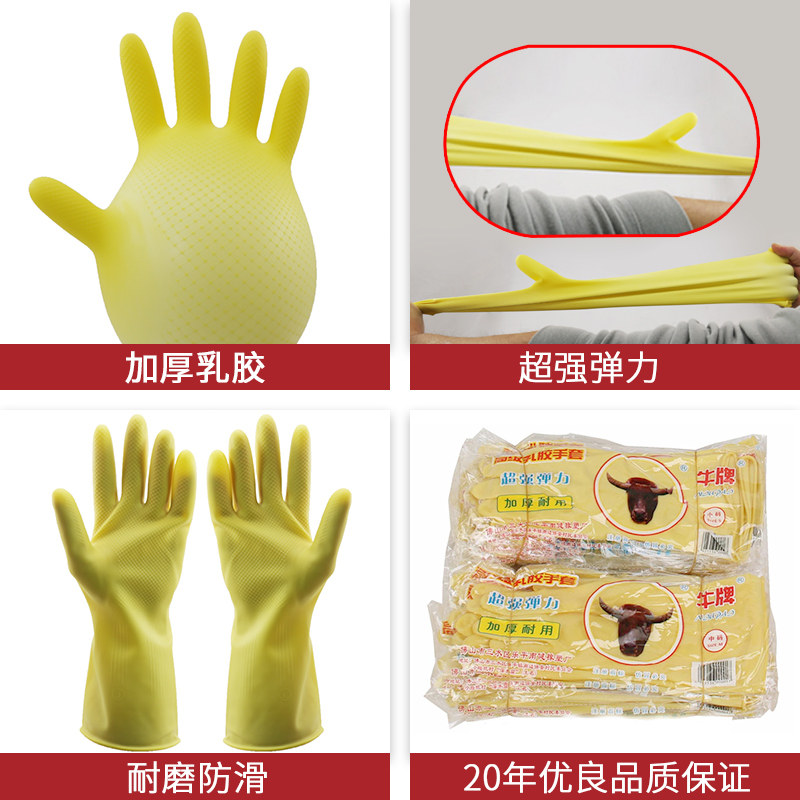 Thickened cow brand latex gloves housework washing rubber wear-resistant waterproof kitchen durable beef tendon labor protection large elasticity