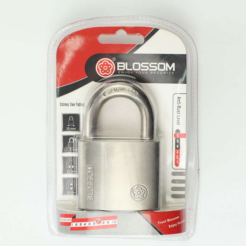 Plum blossom lock 304 stainless steel through open padlock waterproof anti-rust anti-theft lock reinforcement marble lock warehouse large iron door lock