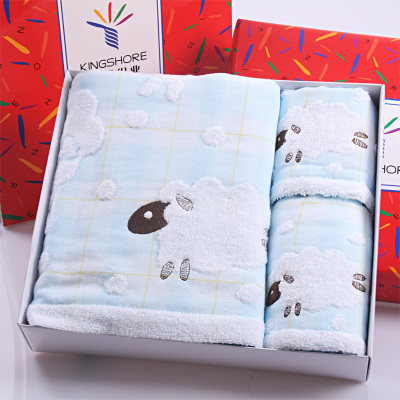 Gold number pure cotton small goat untwisted plaid gauze square towel face towel bath towels with three sets of accessories box