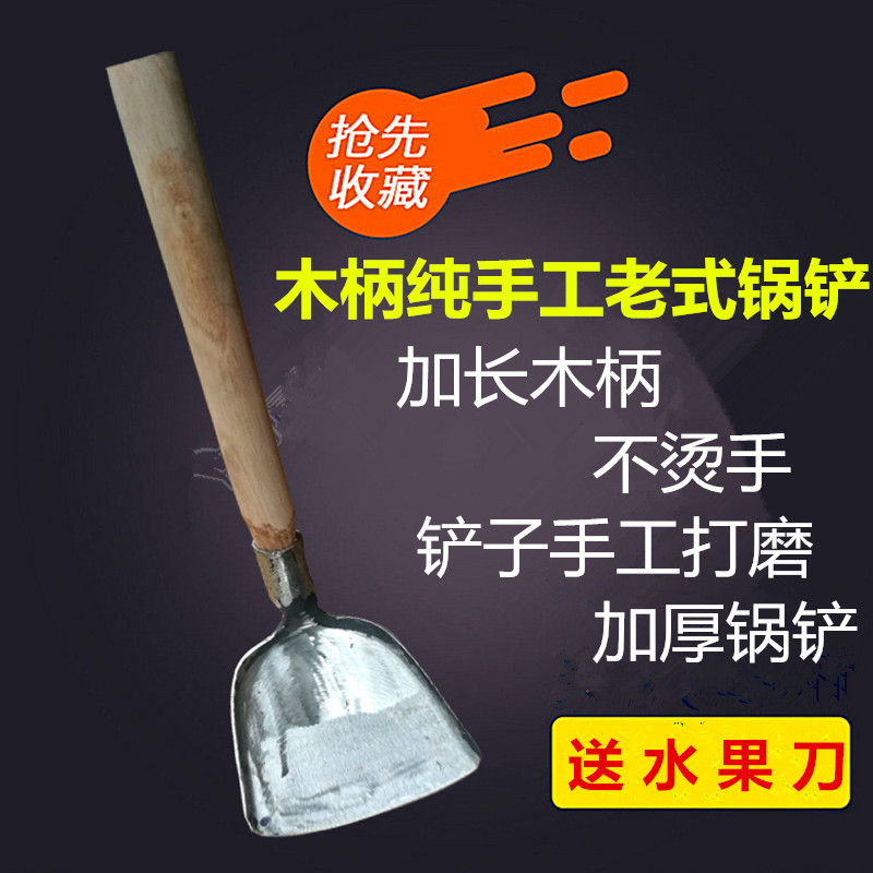 Thickened Hand Stainless Steel Pan Shovel Stainless Steel Thickened Pan Shovel Wood Handle Individually Handmade Iron Pan Shovel Thickened Handmade Iron Pan Shovel Wood Handle
