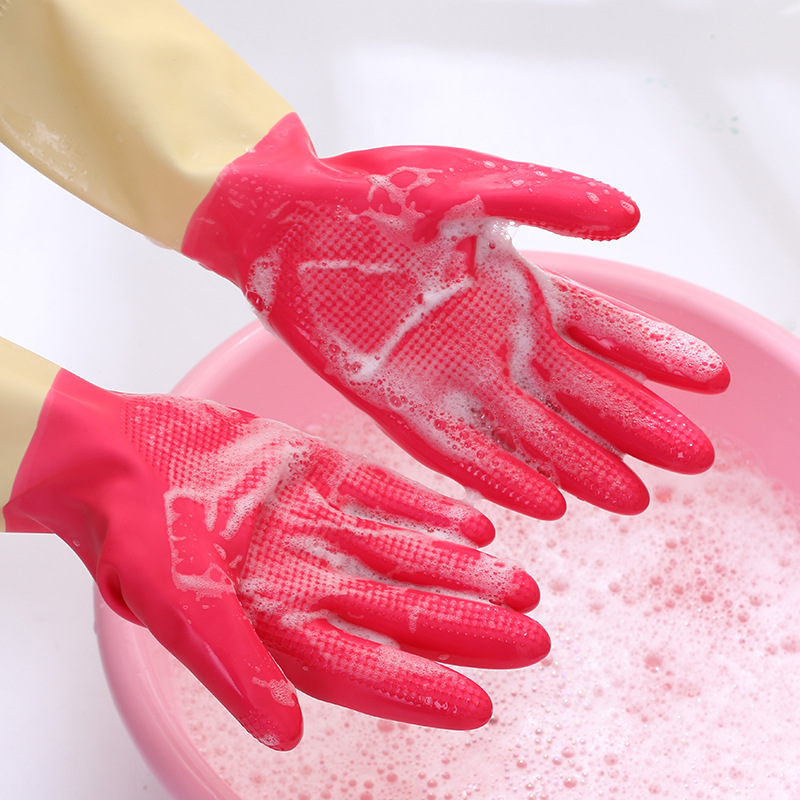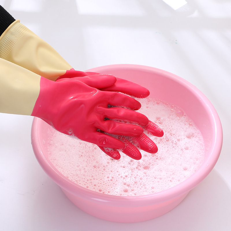 Taiwanese Hands Treasure Rubber Gloves 9022 Rubber Waterproof Laundry Household Dishwashing Thickened Lengthened Bicolor Gloves-Taobao
