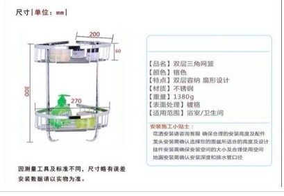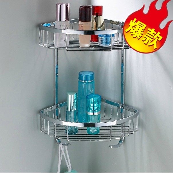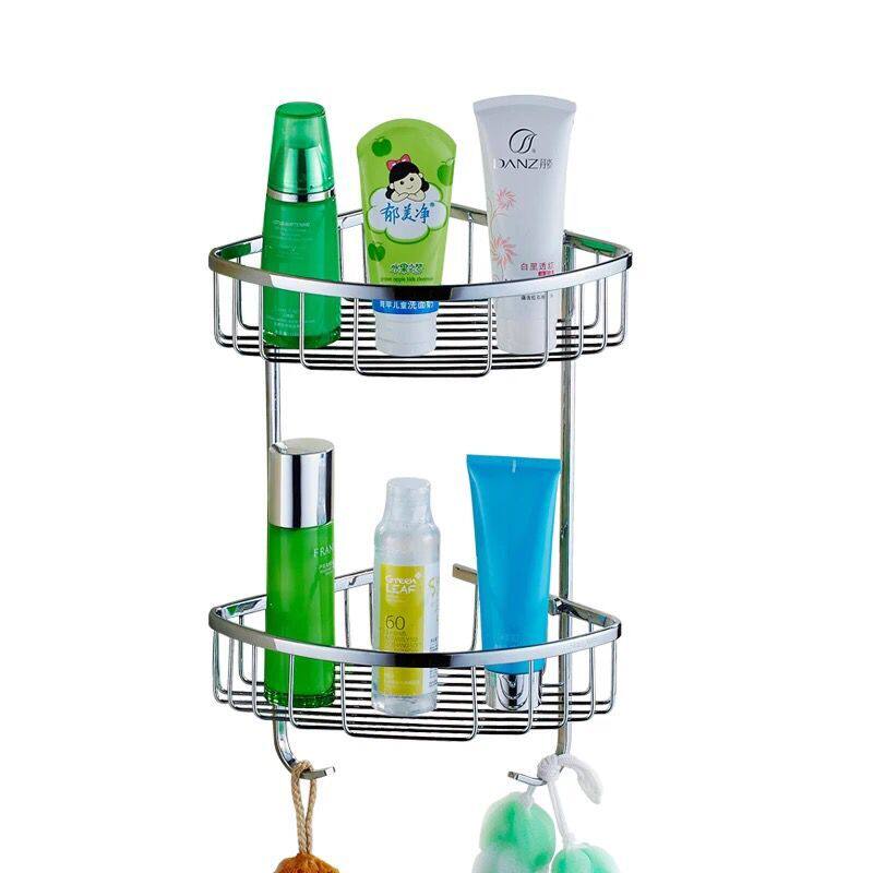 304 stainless steel bathroom shelf Powder room corner basket double-layer corner rack Triangle mesh blue rack bathroom storage rack