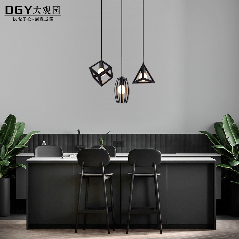 Retro industrial style single head wrought iron lamps Nordic simple personality creative cafe bar dining room table small chandelier