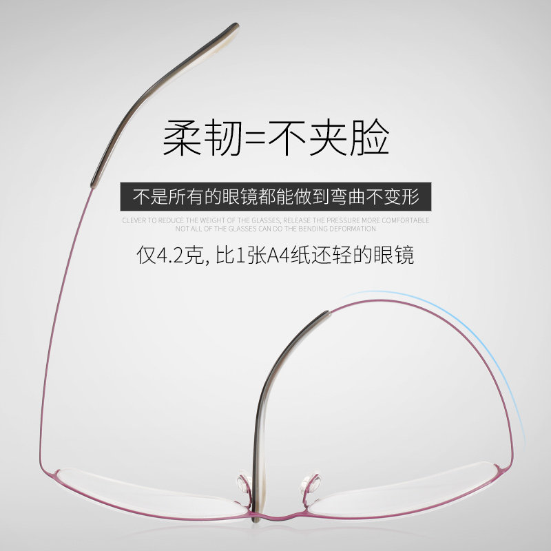 Ultra-light spectacle frame Female half-frame Myopia Glasses B titanium Cognitive Comfort Light and thin Eye frames Jane about the finished product-Taobao