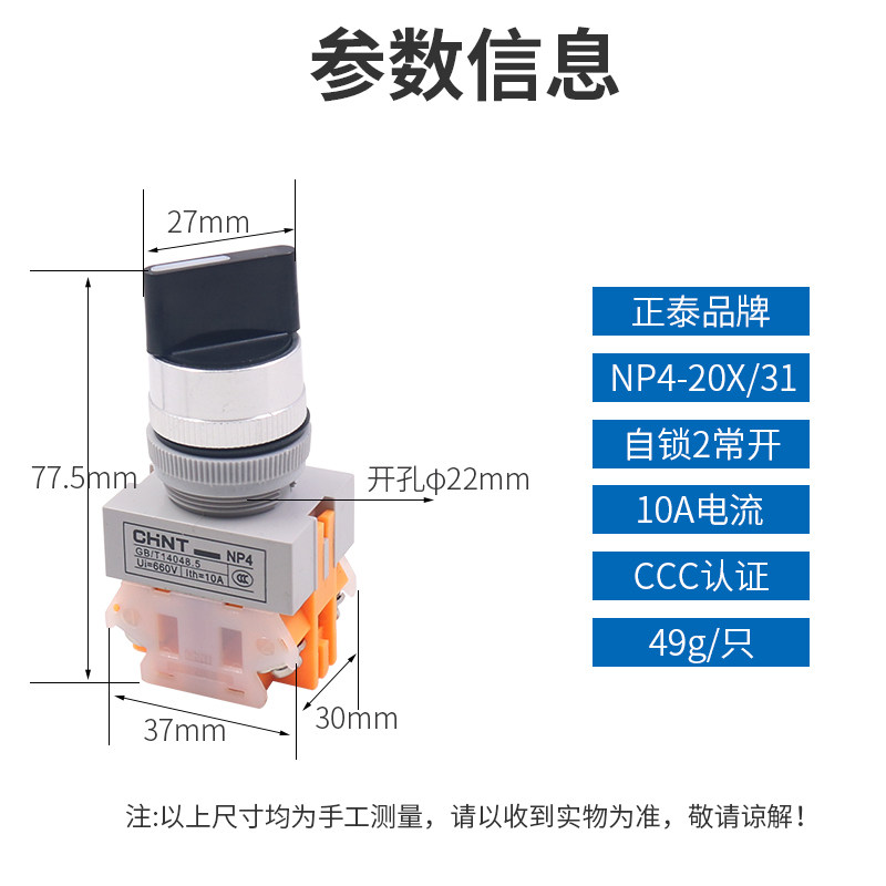 Zhengtai rotary button three-position knob three-speed self-locking switch contact 22mm two normally open NP4-20X 3 start B