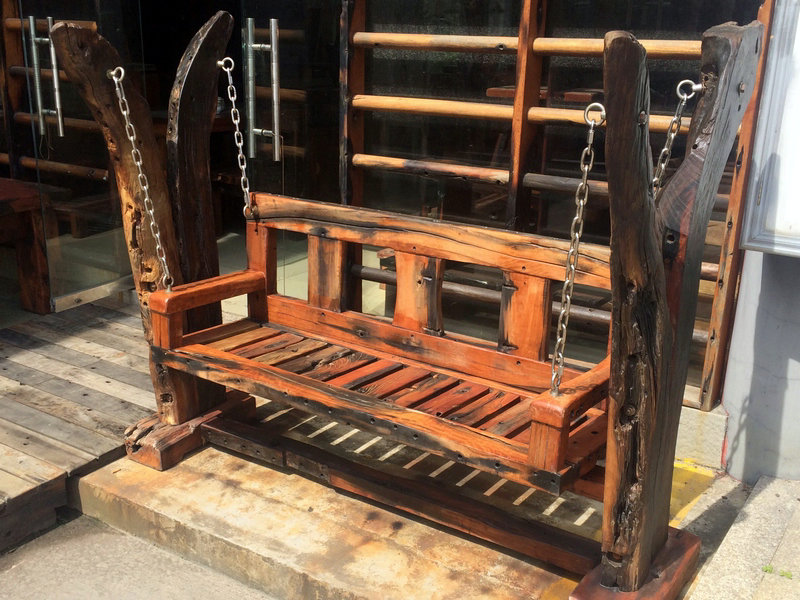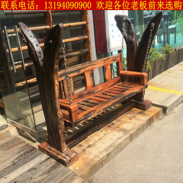 Old boat wood Wooden Rocking Chair Shipwreck Wood Furniture Villa Garden Outdoor Double Ecological Retro Solid Wood Rocking Chair Pendant Chair