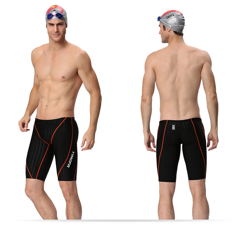 English Hair 9102 Mercerized Fabric Training Competition Racing Racing in the middle leg 50% Men's swimming pants with XXXL
