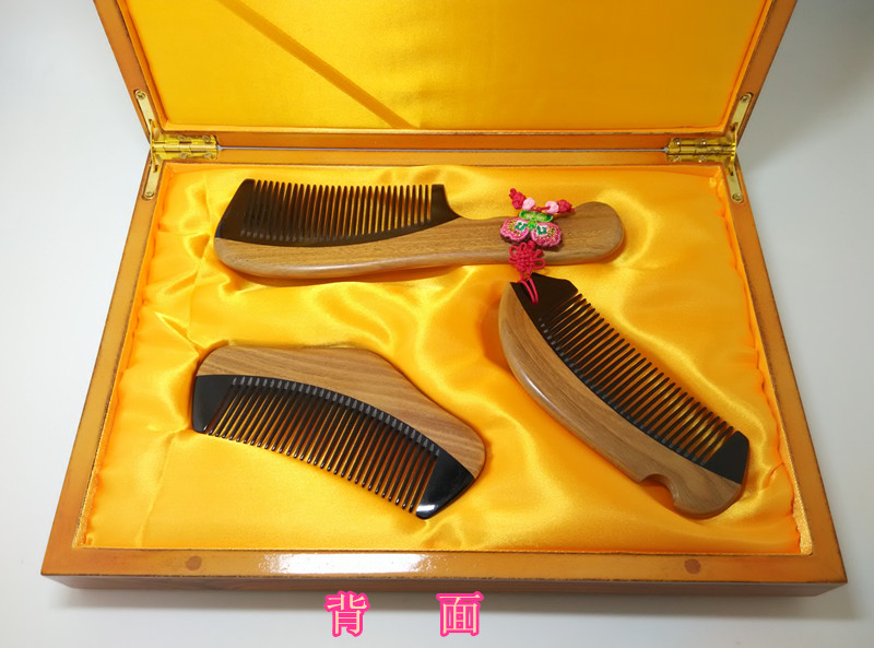 Changzhou specialty comb grate factory Green sandalwood horn birthday travel souvenir boutique wooden box gift set