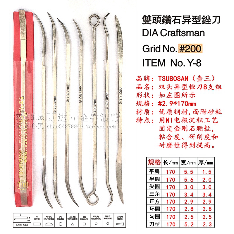 Japanese pot three diamond special-shaped file 3*170 diamond special-shaped double-head file 8 branches curved hook alloy file Y-8
