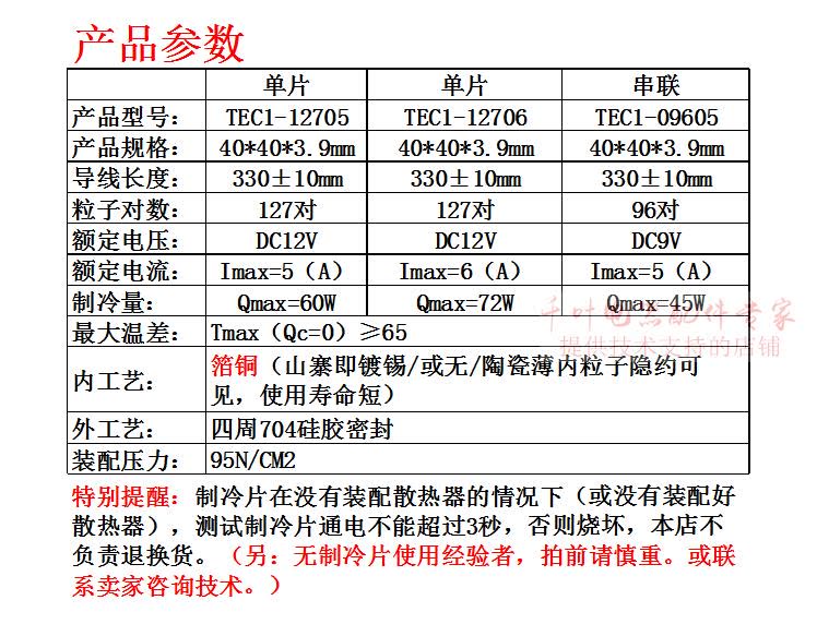 Original Class 1 TEC1-12705 Semiconductor Refrigeration Chip Red Wine Cabinet Chip Car Heat Cooling Water Cooling DIY