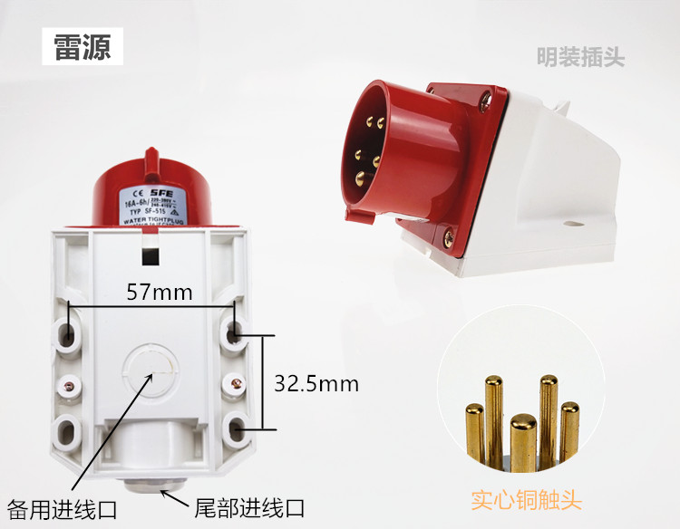 SFE Anti-fit three-phase four-wire, five-hole waterproof industrial power male plug 16A32A input air socket