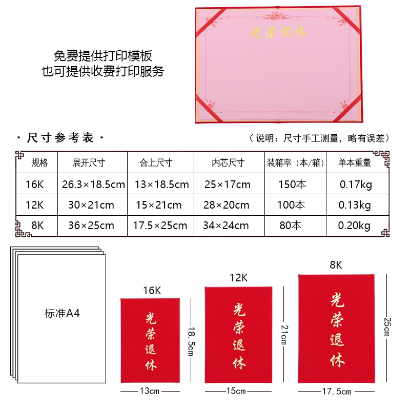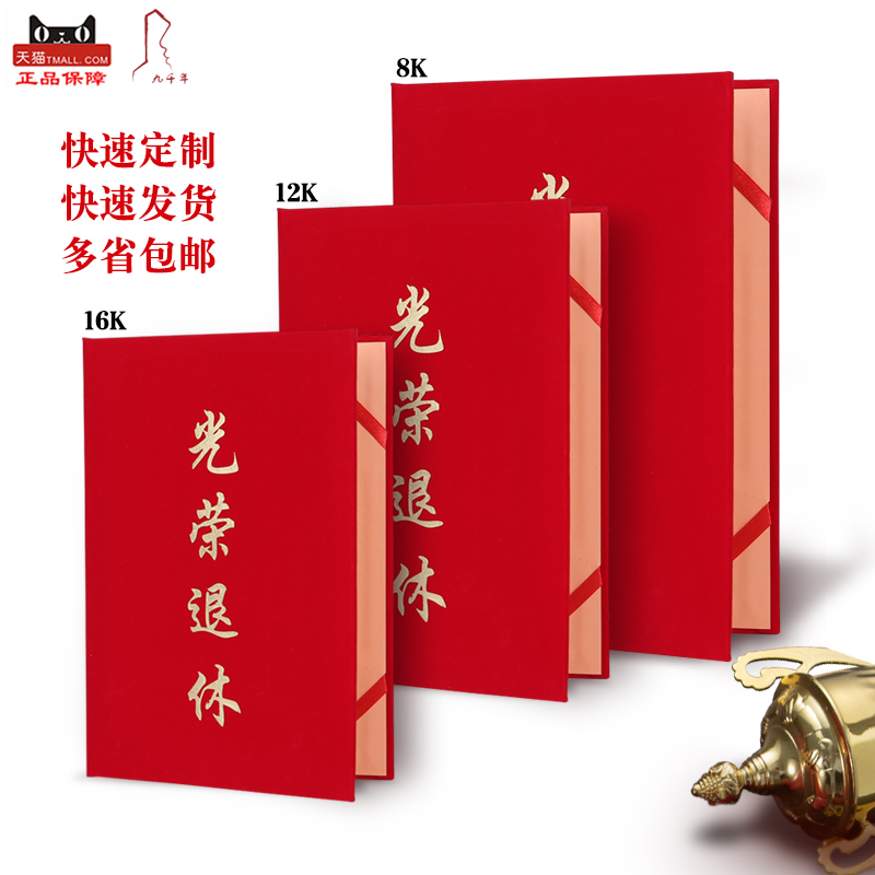 Nine thousand year high-end suede glorious retirement certificate custom-made retirement souvenir certificate shell custom 8K12K16K glorious certificate cover resignation wholesale core printable