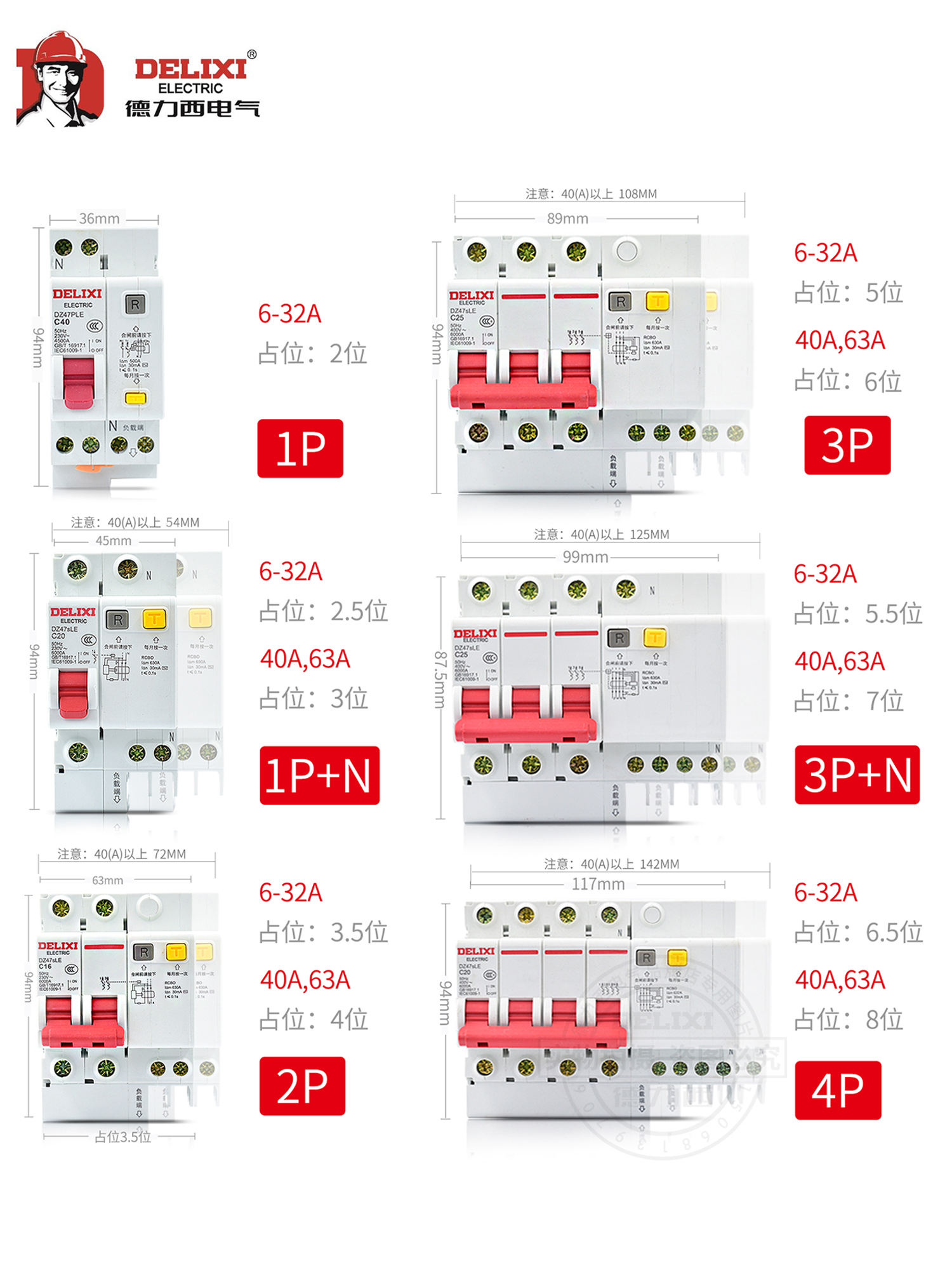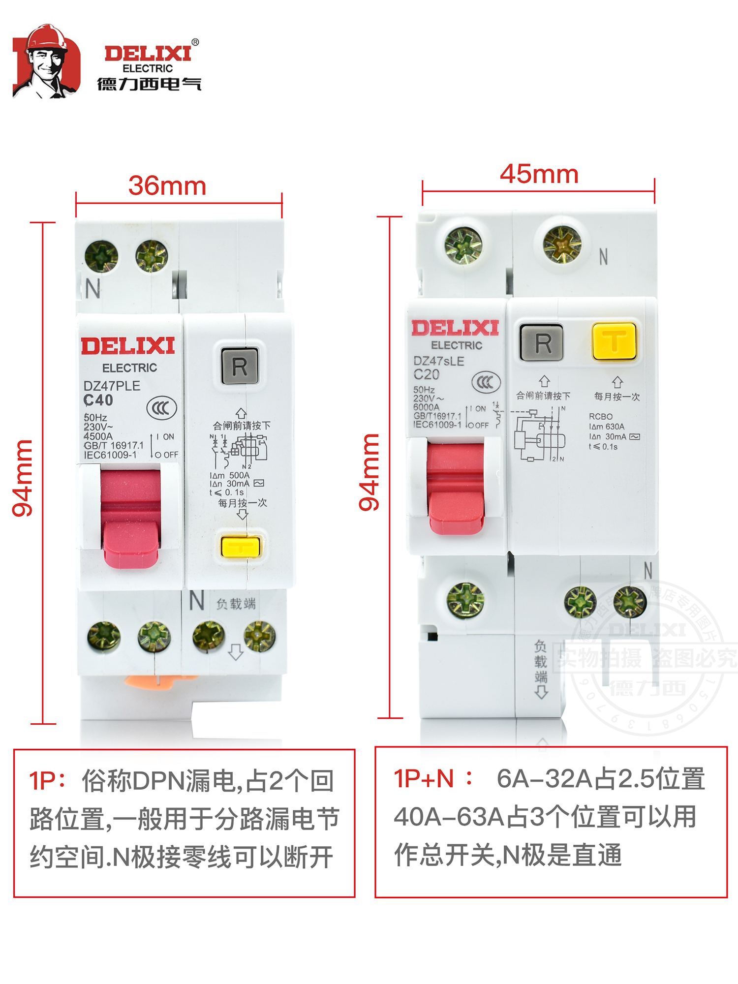 Delixi DZ47sLE air switch with leakage protector 1P N circuit breaker 63 household 2P leakage protection 3240A