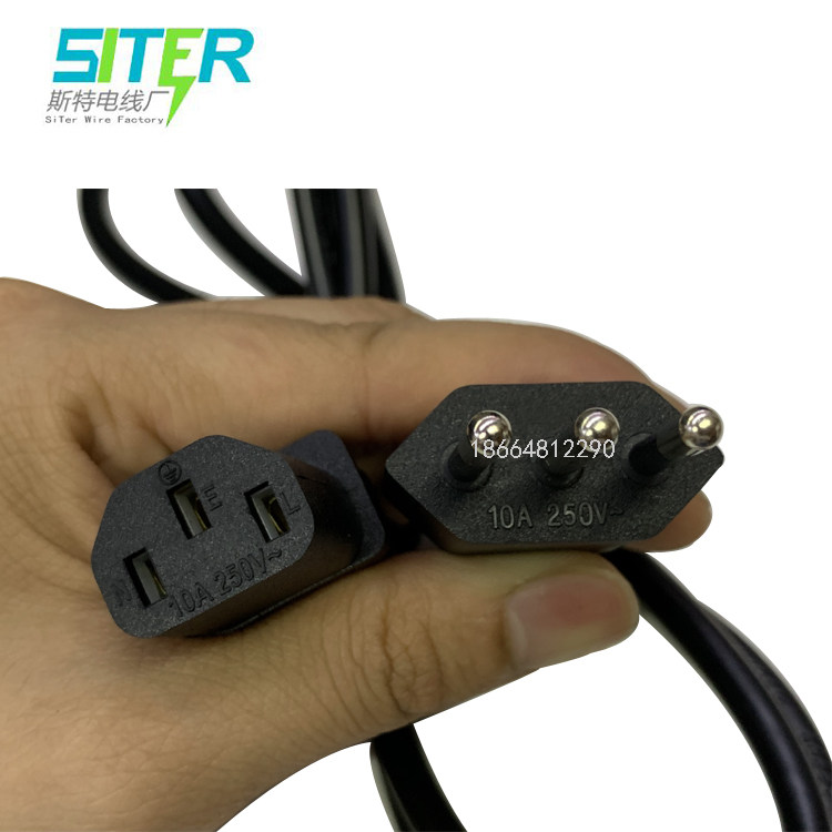 Power cord manufacturers Chile power cord Italian standard side-by-side three cylindrical product word plug cord 1 5 m 0 75MM2