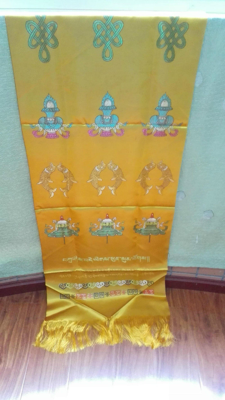 Boutique brocade thickened satin eight auspicious five-color Hada 3 rows of eight auspicious patterns 260cm * 50cm