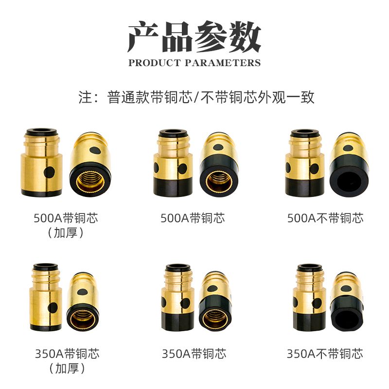 350A Without copper core insulation sleeve 350A with copper core insulation sleeve 350A thickened with copper core insulation sleeve 500A Without copper core insulation sleeve 500A with copper core insulation sleeve 500A thickened with copper core insulation sleeve 500A thickened with copper core insulation sleeve 500A thickened with copper core insulation sleeve 500A thickened with copper core insulation sleeve 500A thickened with copper core insulation sleeve