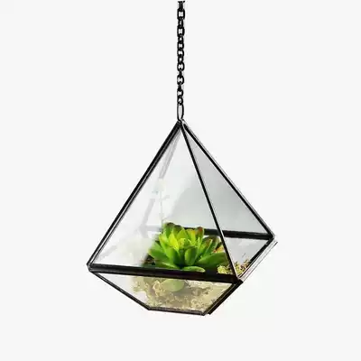 All-copper hanging hanging glass greenhouse Eternal Life Flower Vase Chubby diamond-shaped fleshy micro landscape flower vase