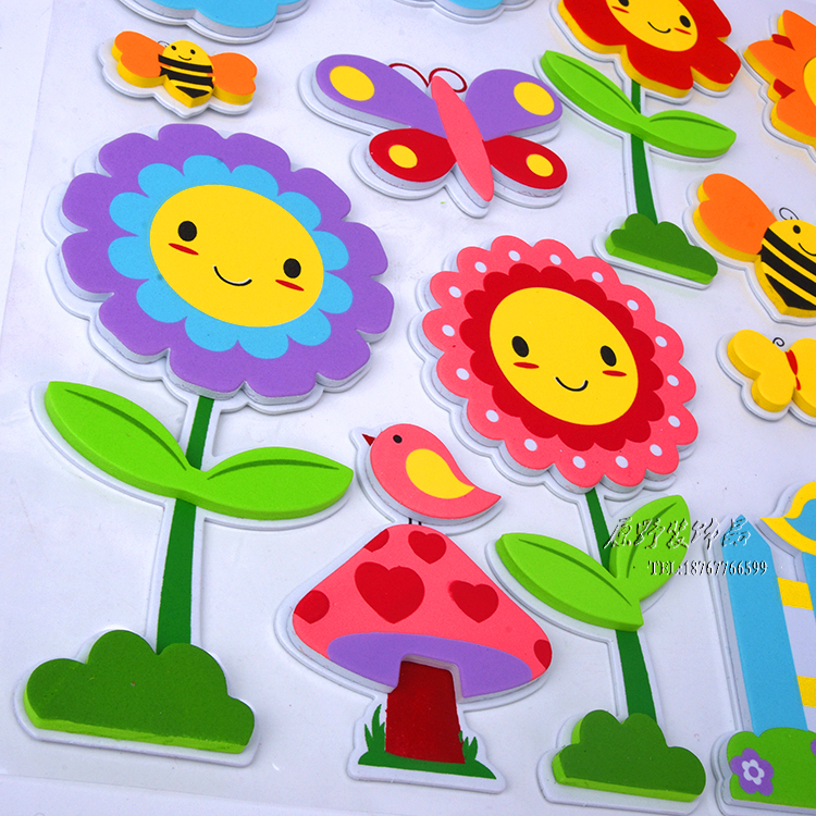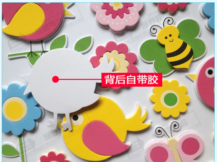 Super thick kindergarten decoration 3D three-dimensional wall stickers flowers, birds and bees children's room classroom environment decoration stickers