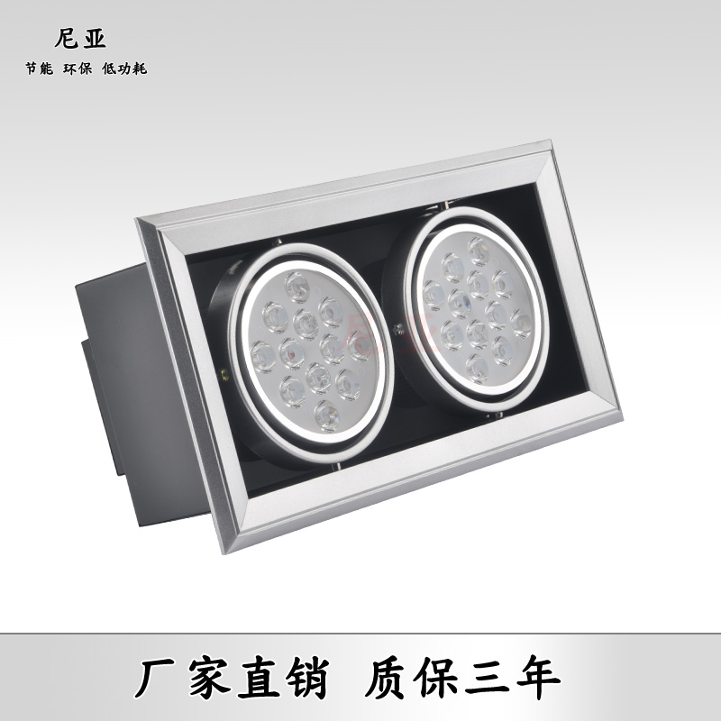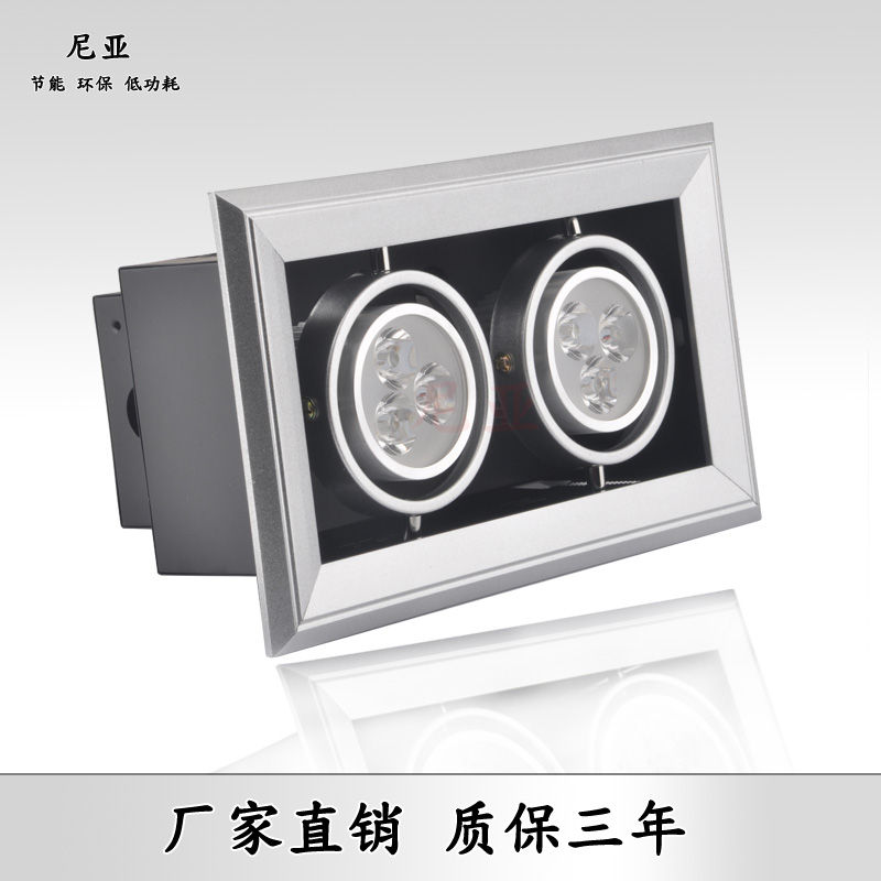 LED bolder lamp double three-head iron aluminum grille ceiling lamp 3w5w9w12w square LED bean bile grille lamp