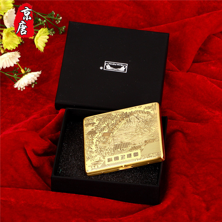 Twin - gun cigarette box 9 packs ultra thin personality smoke control cigarette carton pure copper clay on the river map