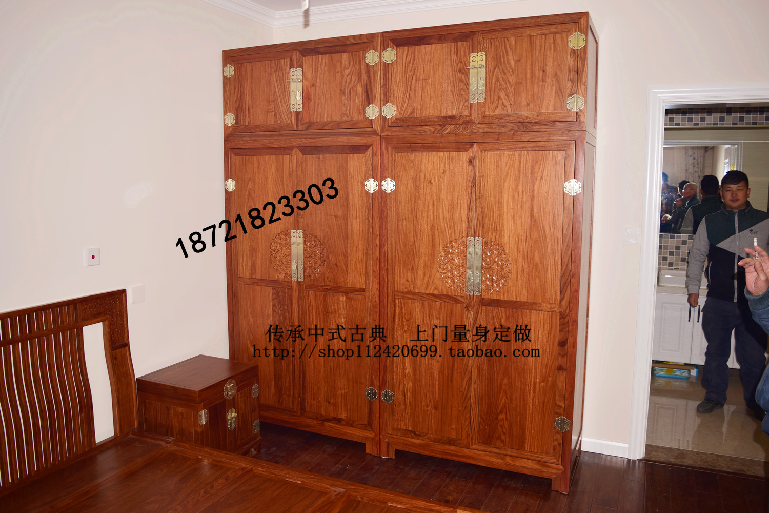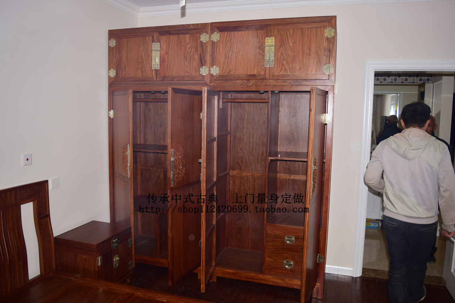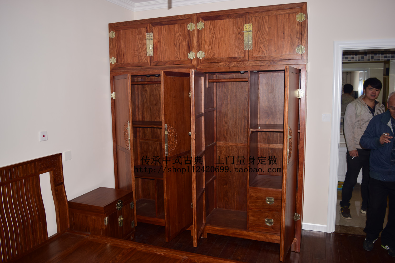 New Chinese red wood wardrobe Hedgehog Purple Sandalwood Four-door Wardrobe Bedroom Containing Cabinet Solid Wood Flowers Pear Wood Closet Furniture