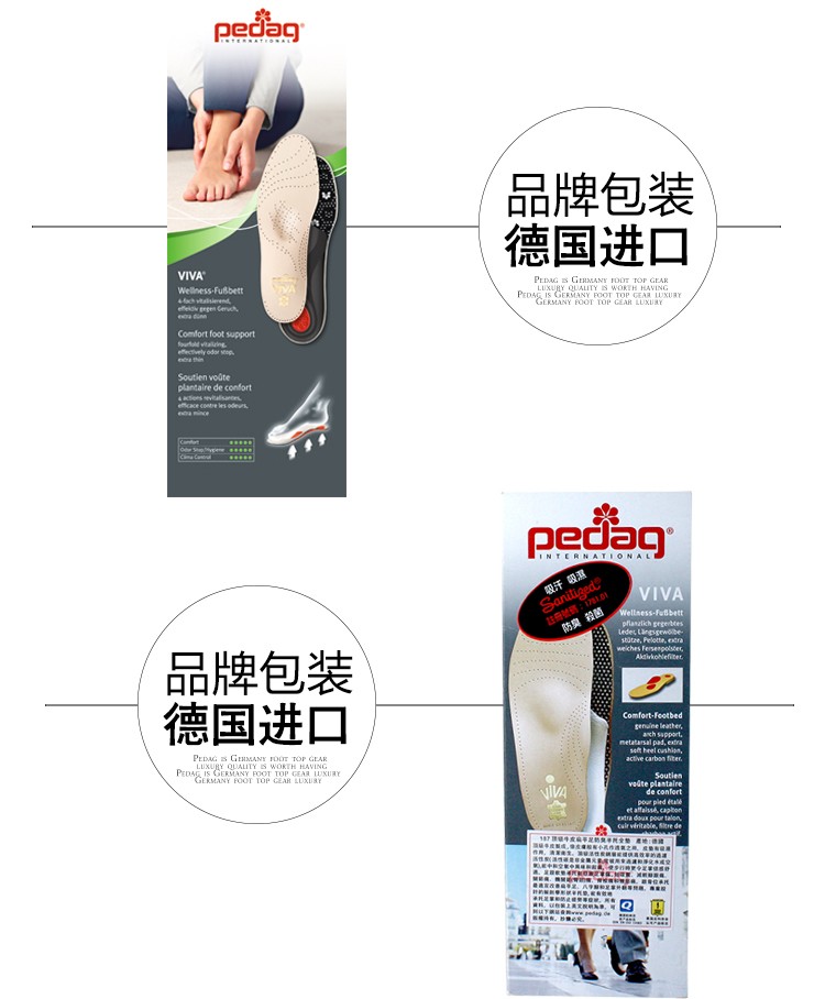 VIVA imports pedag187 188 of its Ledermis active carbon bottom care full cushion cow leather healthcare insole
