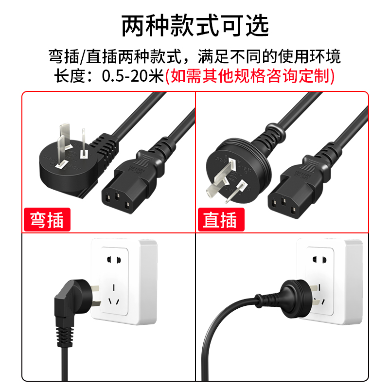 (National 3C safety certification) 0 75 square 10A 2500W standard material (bent plug) (National 3C safety certification) 1 0 square 10A 3