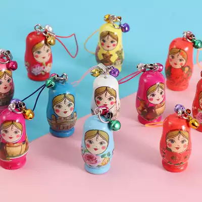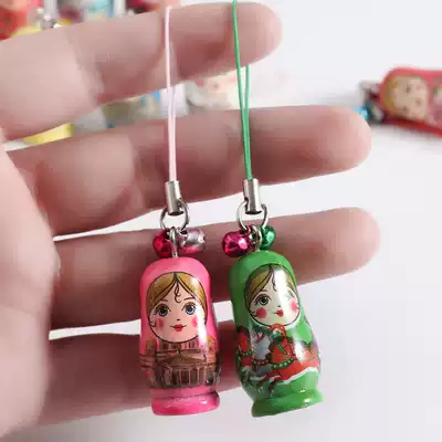 Cartoon wooden Russian Doll Doll mobile phone lanyard keychain pendant accessories children Primary School students gift