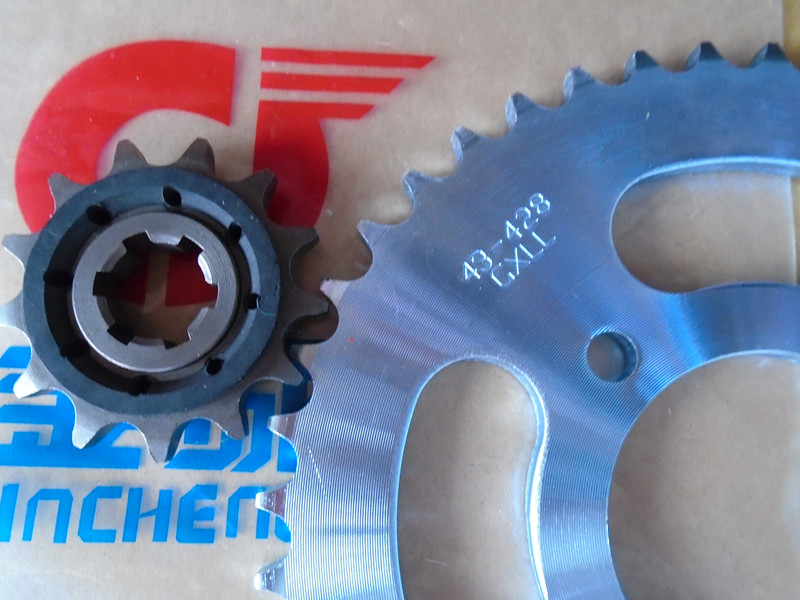 Size sprockets Big sprockets 43 Teeth Small Sprockets 13 Teeth Chain 122 Section 428H Three sets of sleeves