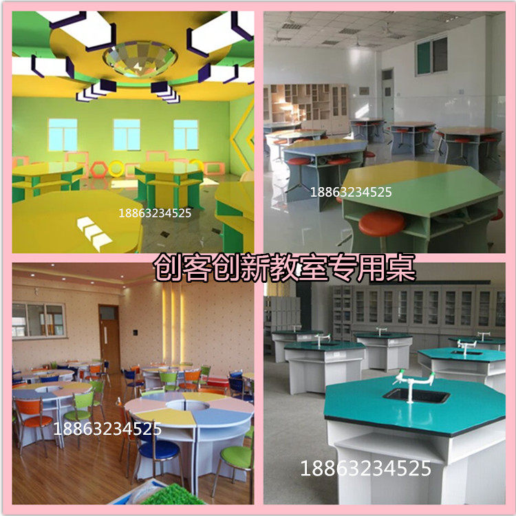 School Color Trapezium Combination Table Hexagon Smart Classroom Table And Chairs Hexagon Table Exploring Table Group Coaching Table