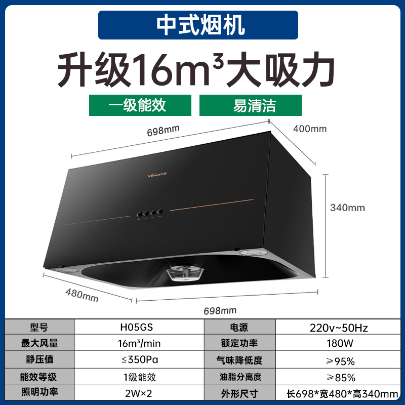 Wanhe CXW-180-H05C suction range hood Chinese household old-fashioned top suction small kitchen row large suction
