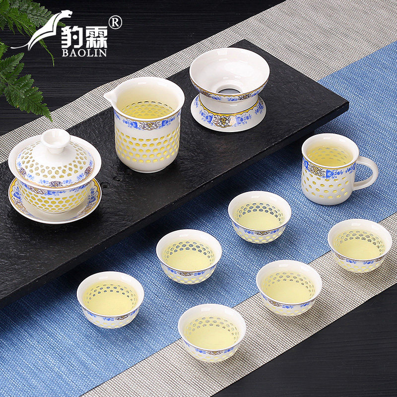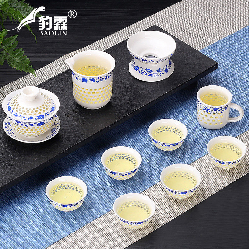 Creative ceramic Kung Fu tea set Household tea cup teapot hollow full simple cover bowl Tea art simple time