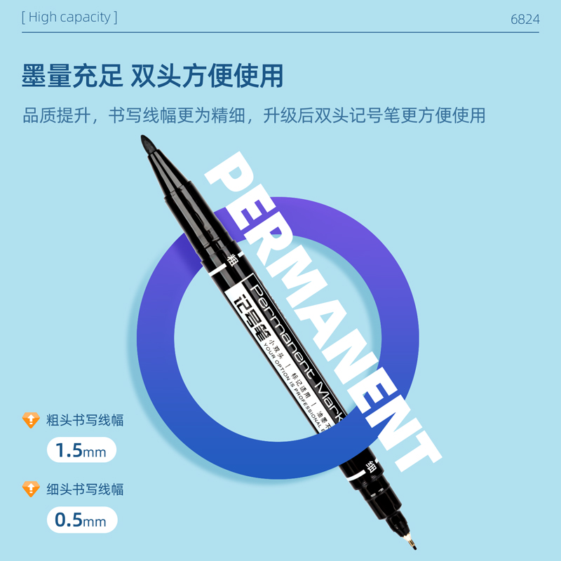 Deli marker pen double head black oily hook pen thick head art special head pen blue red color thin head marking pen children's painting writing medical is not easy to fade waterproof 6824