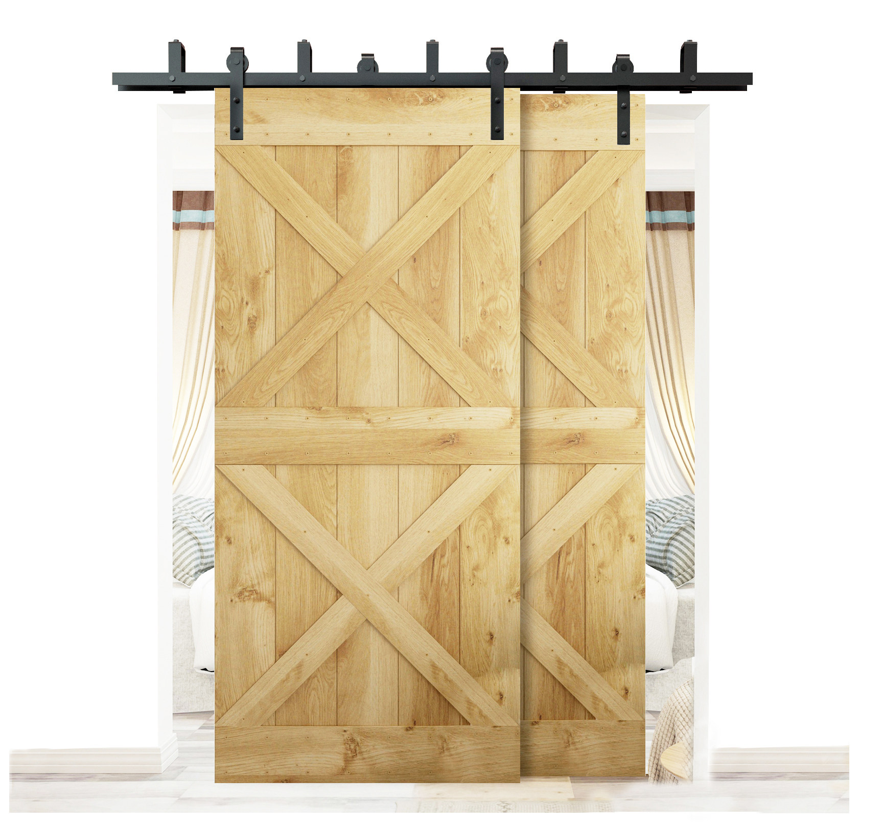 Suspension wheel front and rear double-switch barn door slide rail American partition shifting door parallel double-track bipass double door suspension wheel