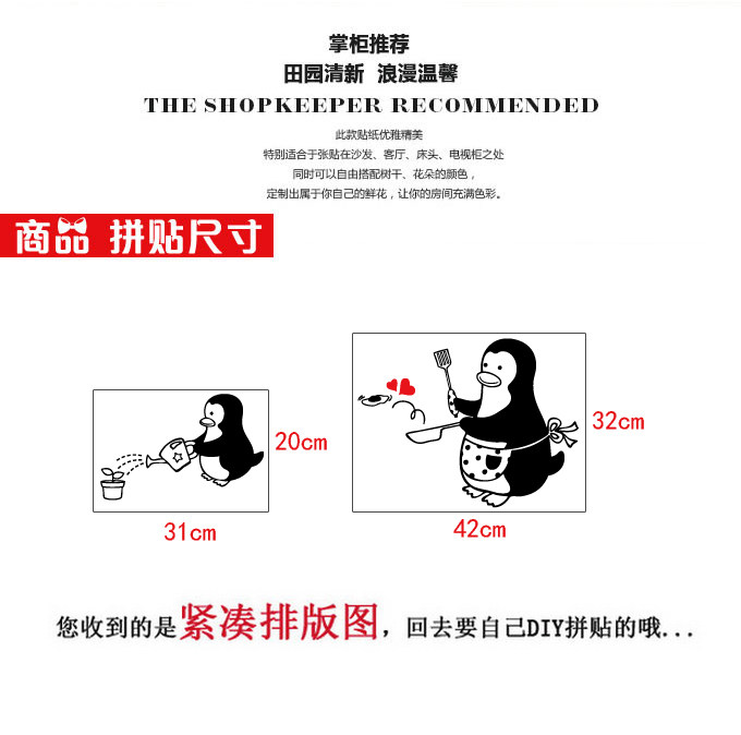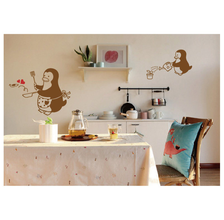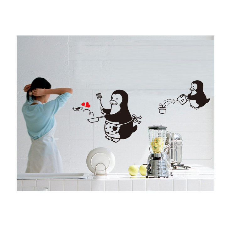 Cute cartoon little penguin kitchen tile decoration refrigerator overall cabinet dining room glass door window waterproof anti-collision sticker