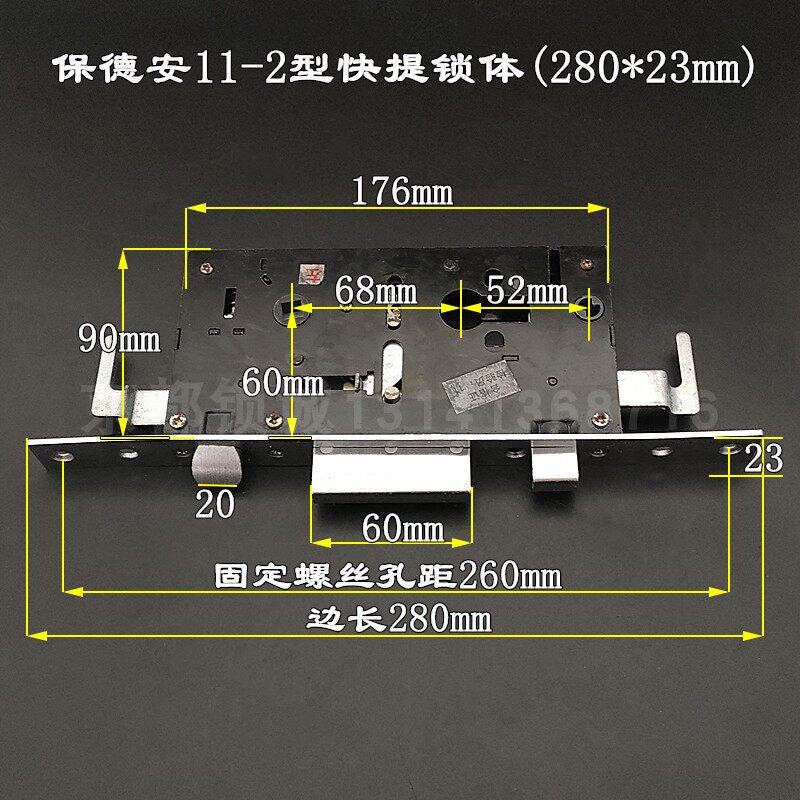 Paodean 11 type lengthened double fast lock body old security door with anti-lock square side single hole 280 * 23mm