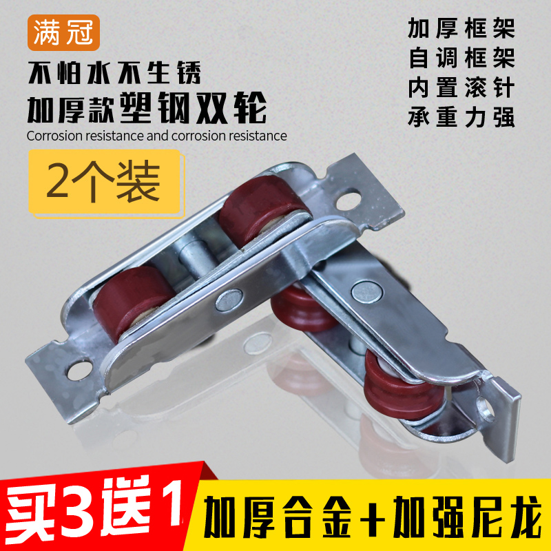 Full crown plastic steel double wheel plastic steel window pulley door and window pulley push-pull window glass door grooved pulley 77 80 80 88