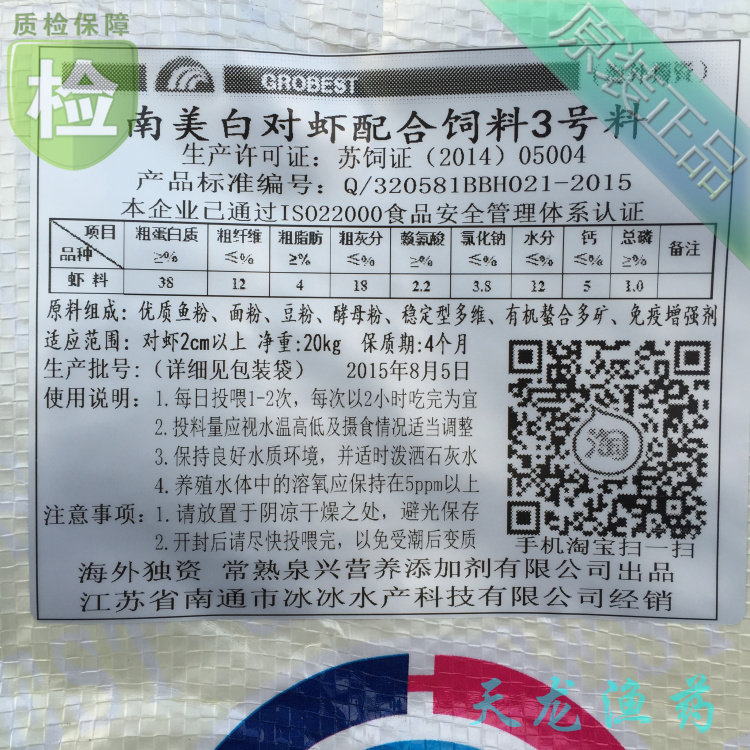 South American white prawns assorted feed 3 Number of materials 36 Protein 1 6mm granules 20 kg Loaded Prawn Feed Brand